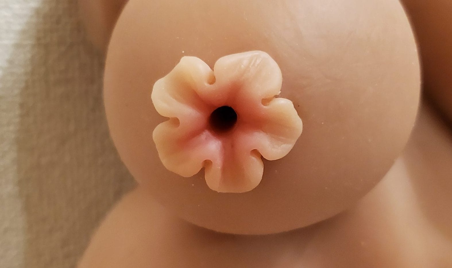 近くで見ると皮膚のシワ感、毛穴まで作りこまれおりまるで本物の女性の型を取って作られたかのような完成度です。