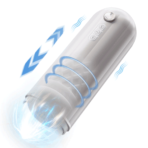 ピストン、回転、吸引の機能を兼ね備えた取っ手が付いているタイプの電動オナホールです。