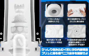 息子を挿入して、内部でピストン、回転、吸引の洗礼を受けることができるタイプで、挿入した状態での内部での吸引はかなりの力強さになりリアルフェラよりも遥かに強い吸引力を感じることができます。